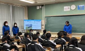 堺市立三国丘中学校で1年生を対象とし職業講話に参加しました。