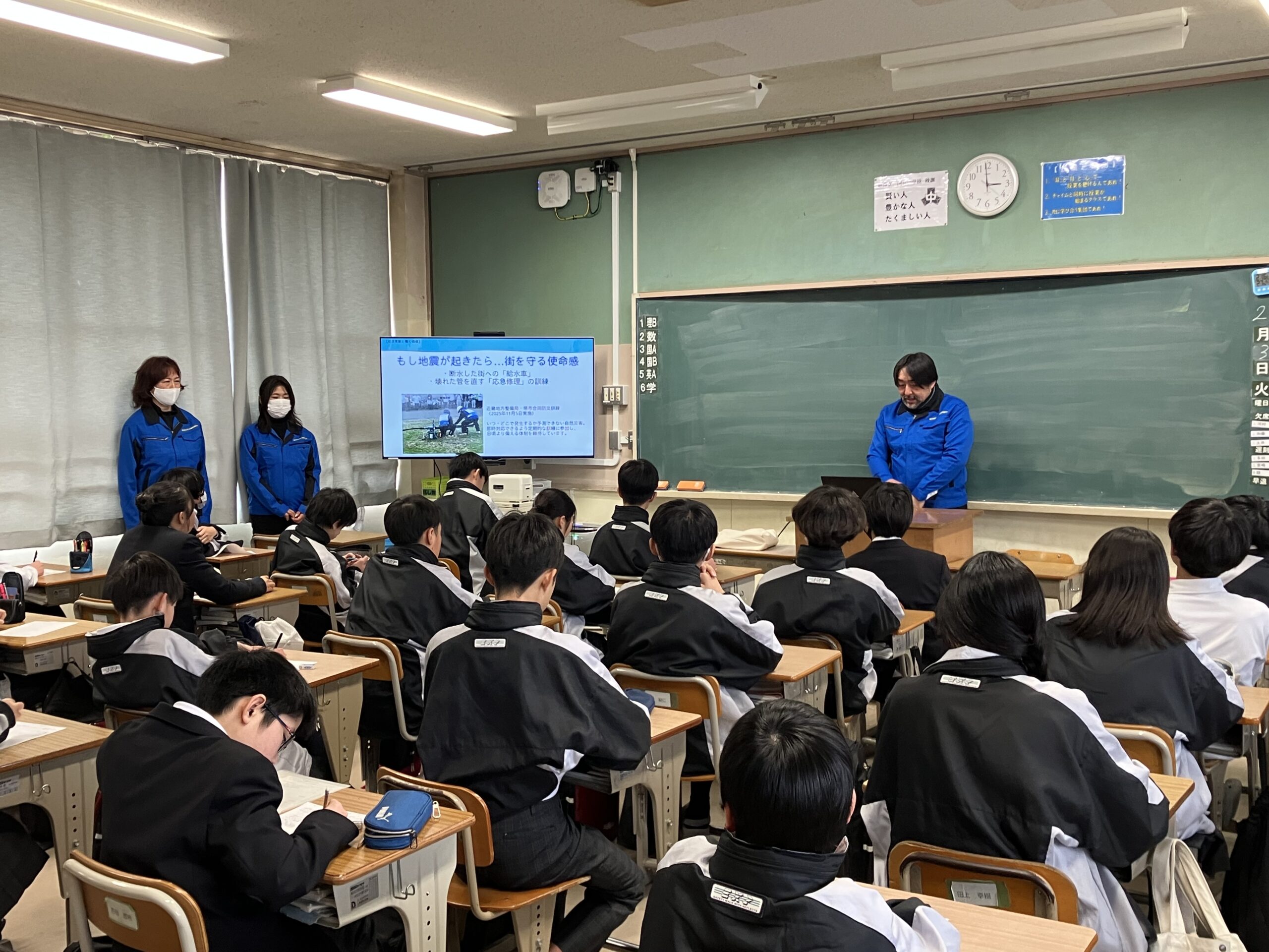 当組合は、水道の仕組みや役割、水道業者の仕事、仕事の価値を資料に基づき説明しました。